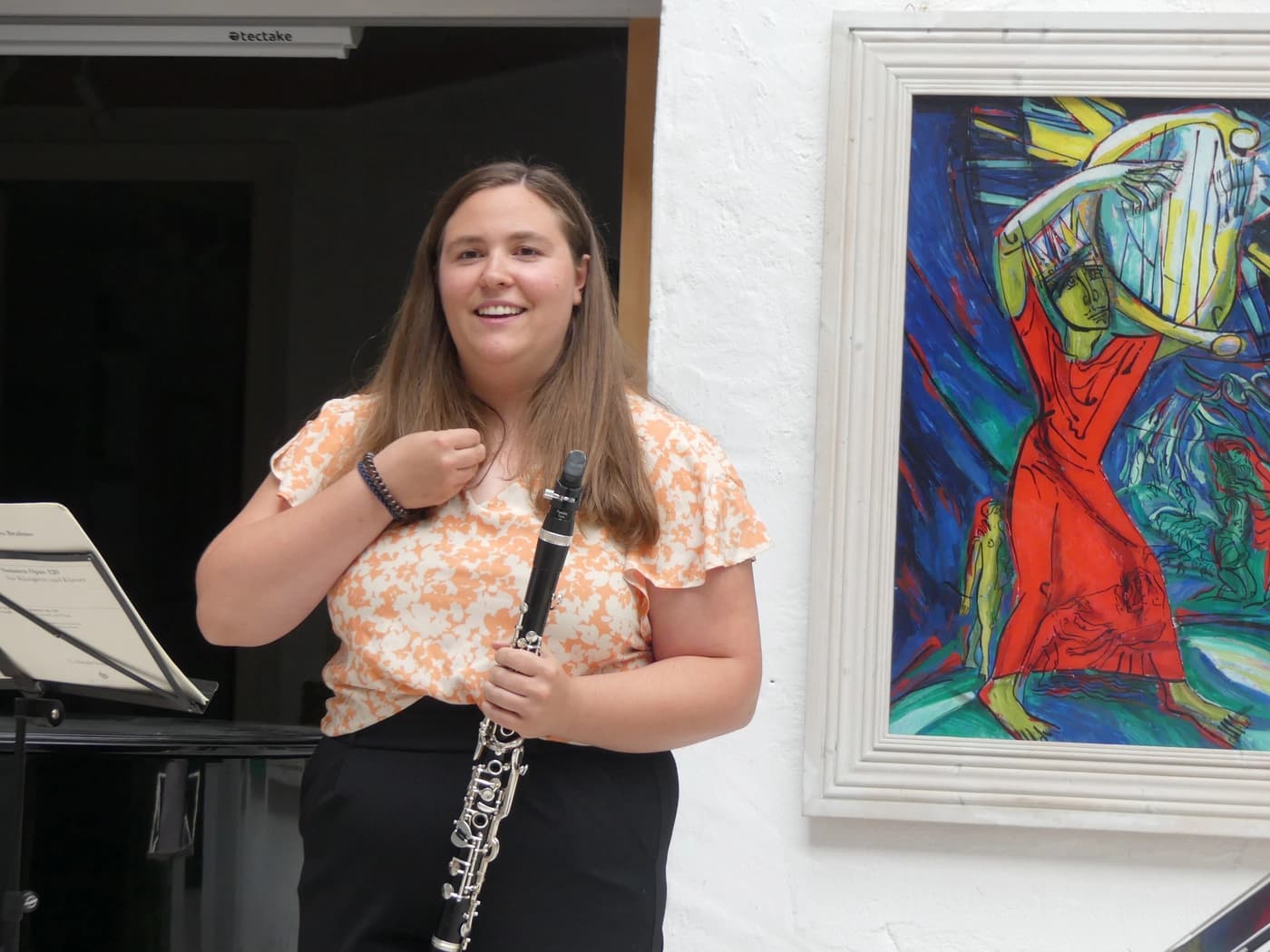 Hendrik Rekers (Tenor) wusste Heines Ironie und Schumanns Musik gekonnt zu vereinen, gefolgt von Brahms Klarinettensonate Es-Dur, gespielt von Elisa Zimpfer, die im weitern Verlauf des Konzerts auch durch ihr komödiantisches Talent begeisterte. Ihr Mitspieler, Tim Brucker, erschloss mir zum ersten Mal das Cajon als eigenständiges, wichtiges Instrument im Gesamtklang.